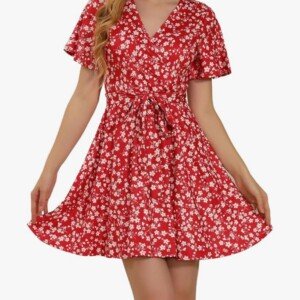 Vivacious Red & White Floral Print Wrap Mini Dress