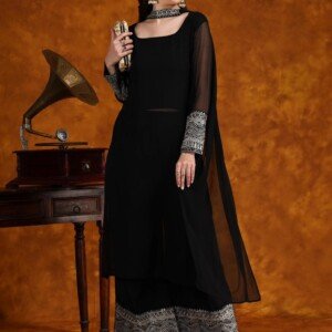 Women’s Black Georgette Kurta Set with Embellished Palazzo